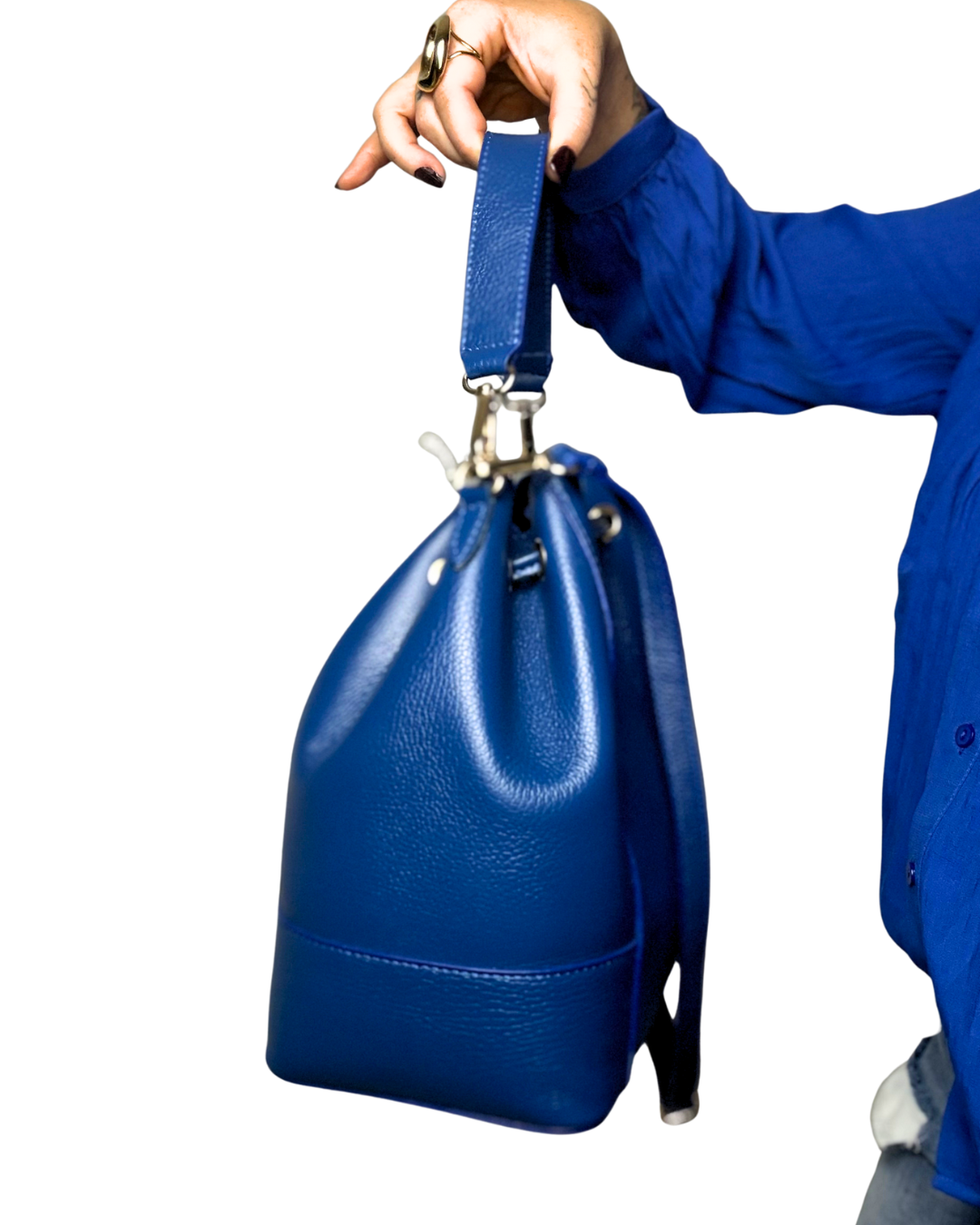 --> Sac forme seau, avec hanse réglable + hanse main, poche à l'intérieur.